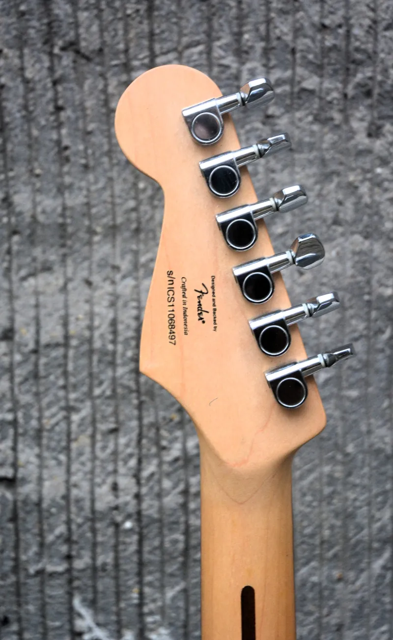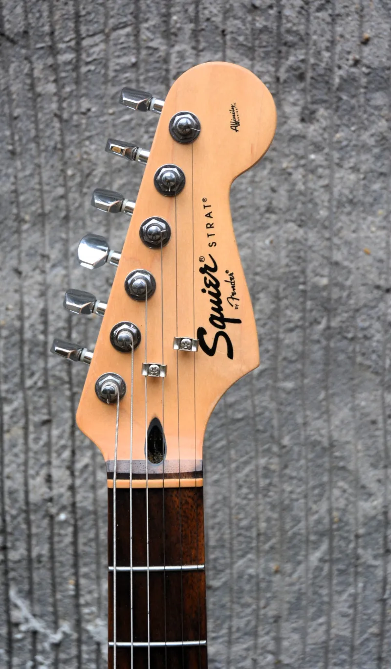 Squier Affinity Stratocaster elektromos gitár (Indonesia 2011) kiváló állapotban. Ez még rózsafa fogólappal készült és duplakerámiás hangszedők vannak benne.Szállítás