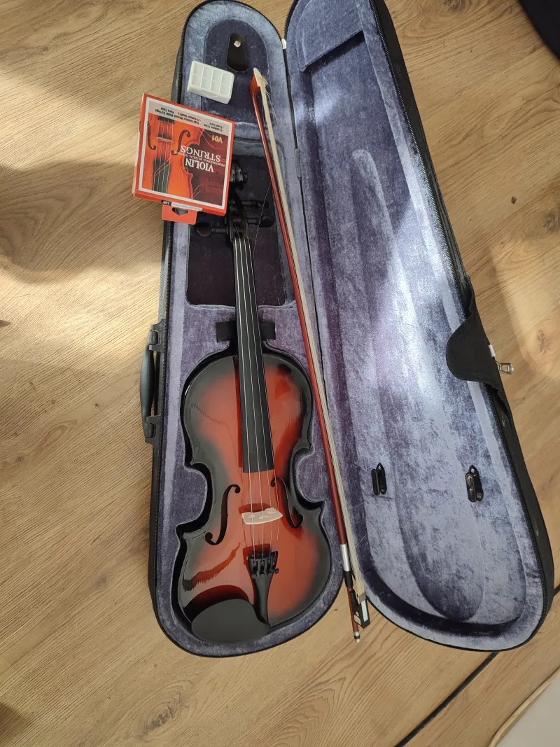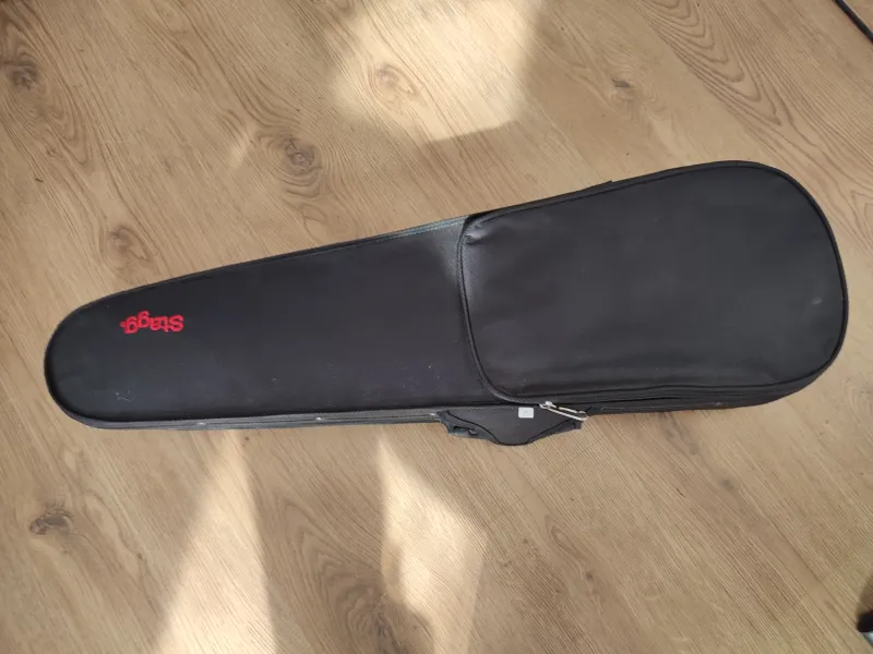 4/4-es stagg hegedű tokkal, gyantával, néhány plusz húrral. A vonót szőrőzni kell.Kapcsolódó hangszerteszt