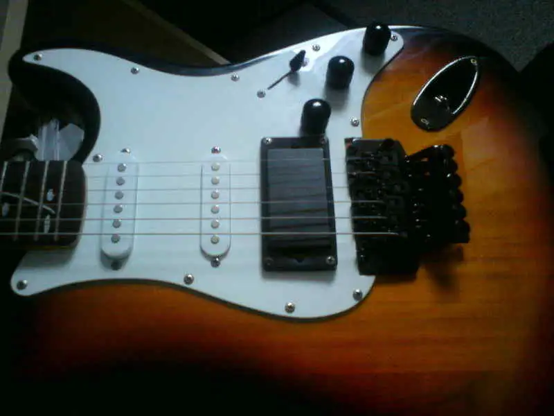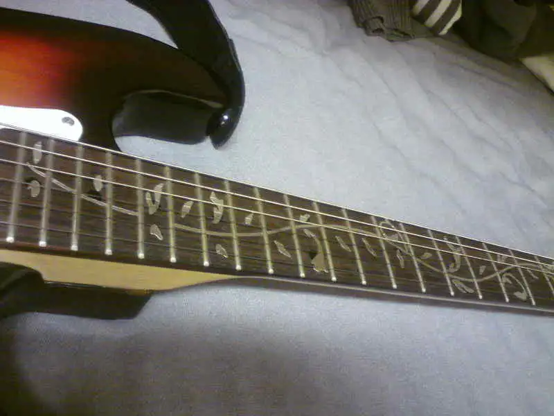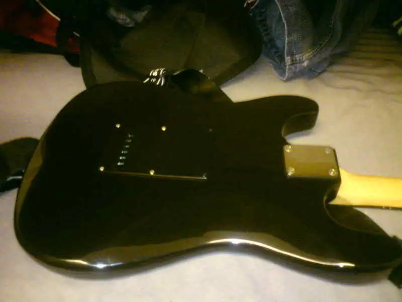 huendeskesCserélhető a képeken látható elektromos gitár. Új húrokkal felszerelve, a gyáritól eltérő hangszedőkkel.