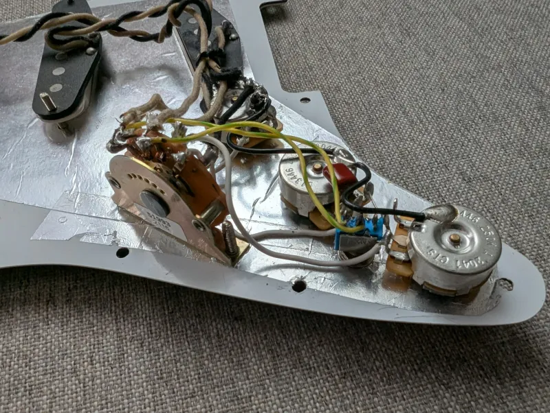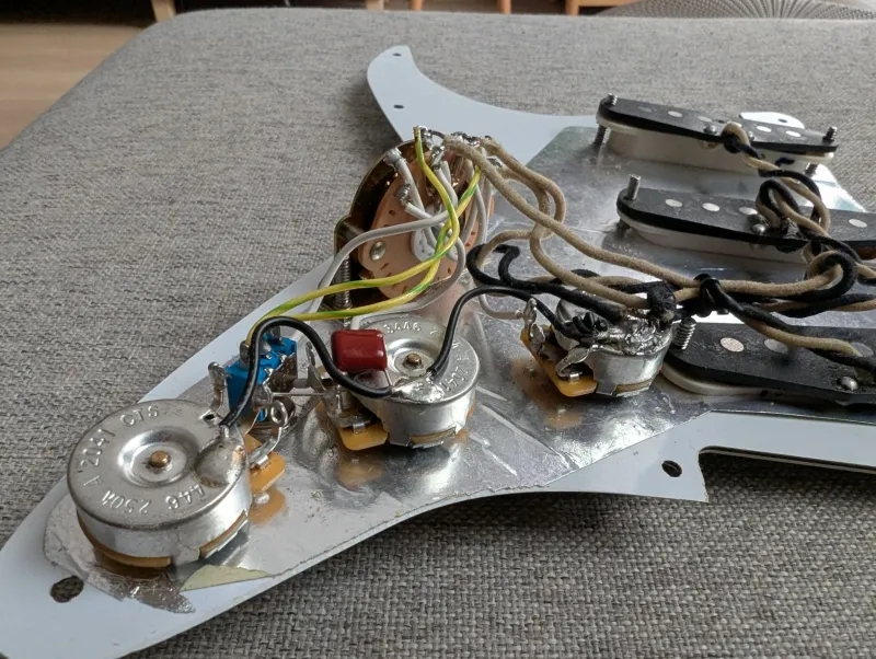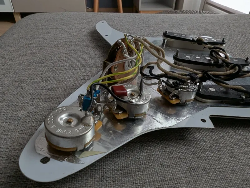 Suhr ML hangszedő szett, gyári Fender elektronikával, hangszerész által beépítetve eladó! Hibátlanul működik, a koptatóba be van építve egy kis kapcsoló, amivel a hídi és nyaki hangszedők kapcsolhatók össze és ezáltal egy szuper, telecaster középállású hangot ad. Gondolom a Suhr ML-t nem kell bemutatni annak aki ismeri Michael Landau vagy Scott Henderson soundját!Postázni tudom!