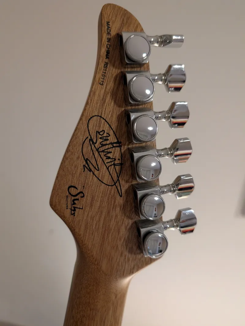 Kiváló állapotban lévő, karcmentes Suhr Rasmus Guthrie Govan Signature, tok nélkül.A Rasmus sorozat rövid ideig, csak a 2010-es évek elején volt elérhető, mivel az eredeti Suhr gitárok konkurenciájává vált, ezért ezek a modellek viszonylag ritkának számítanak a használt piacon. A trükk az volt, hogy Kínában gyártották le, de minden specifikáció egyezett az amerikai Suhr-okkal. Aztán az USA-ban szétszerelték, megcsinálták a plekkezést és a beállítást. Ha megveszed, lesz egy Suhrod töredékáron, csak annyi lesz ráírva, h Made in China...