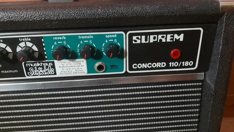 Suprem Concord 110/180 gitárkombó eredeti műszaki és igen szép esztétikai állapotban, hibátlan működéssel, guruló kerekekkel.