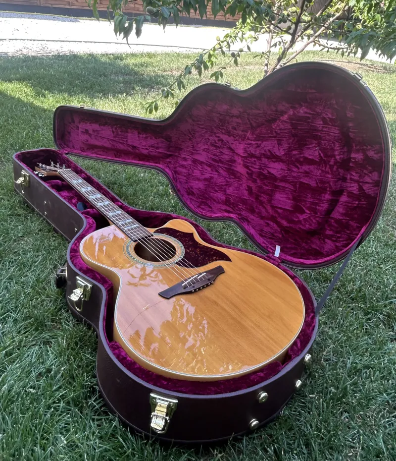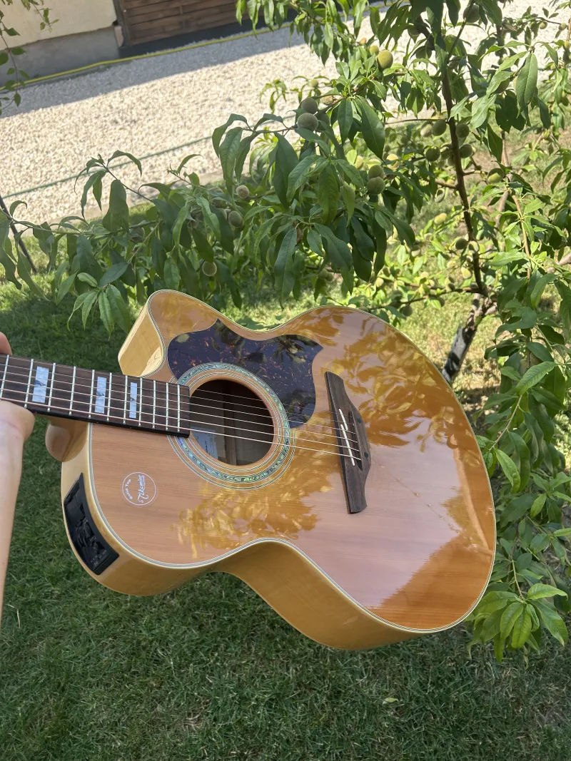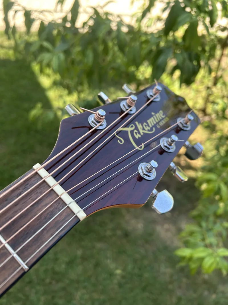 Eladó Takamine EG523SC jumbo elektro-akusztikus gitár, keménytokkal.Ez még a koreai gyártású modell, nem a későbbi kínai sorozat. Tömör, jó minőségű faanyagból készült, nem rétegelt lemez.