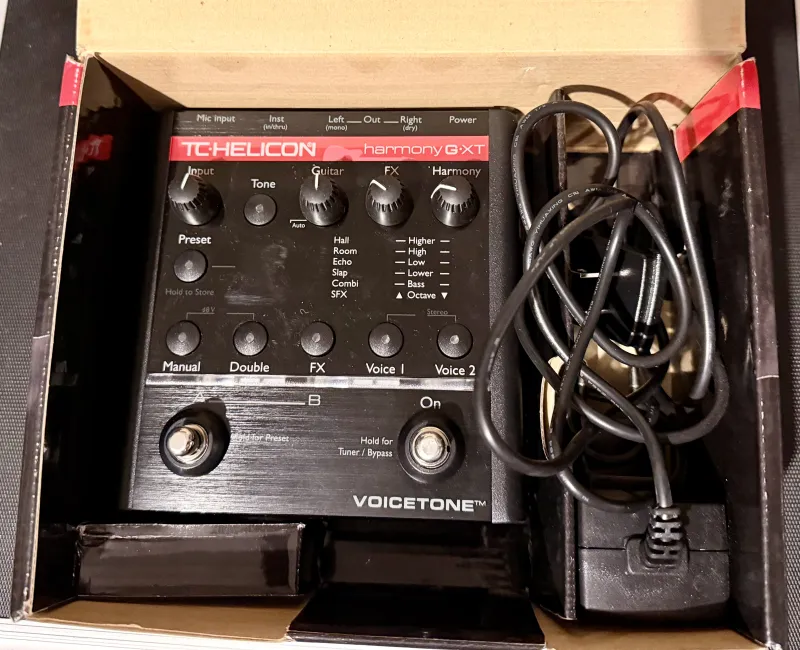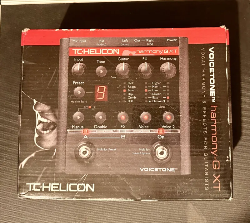 TC Helicon Voicetone Harmony-G XT énekeffekt eladó. A gitárjel alapján generál harmóniákat az énekhang mellé, emelett alap ének effekteket (delay és reverb) is tartalmaz.Nagyon keveset használt, gyakorlatilag gyári állapotú példány.