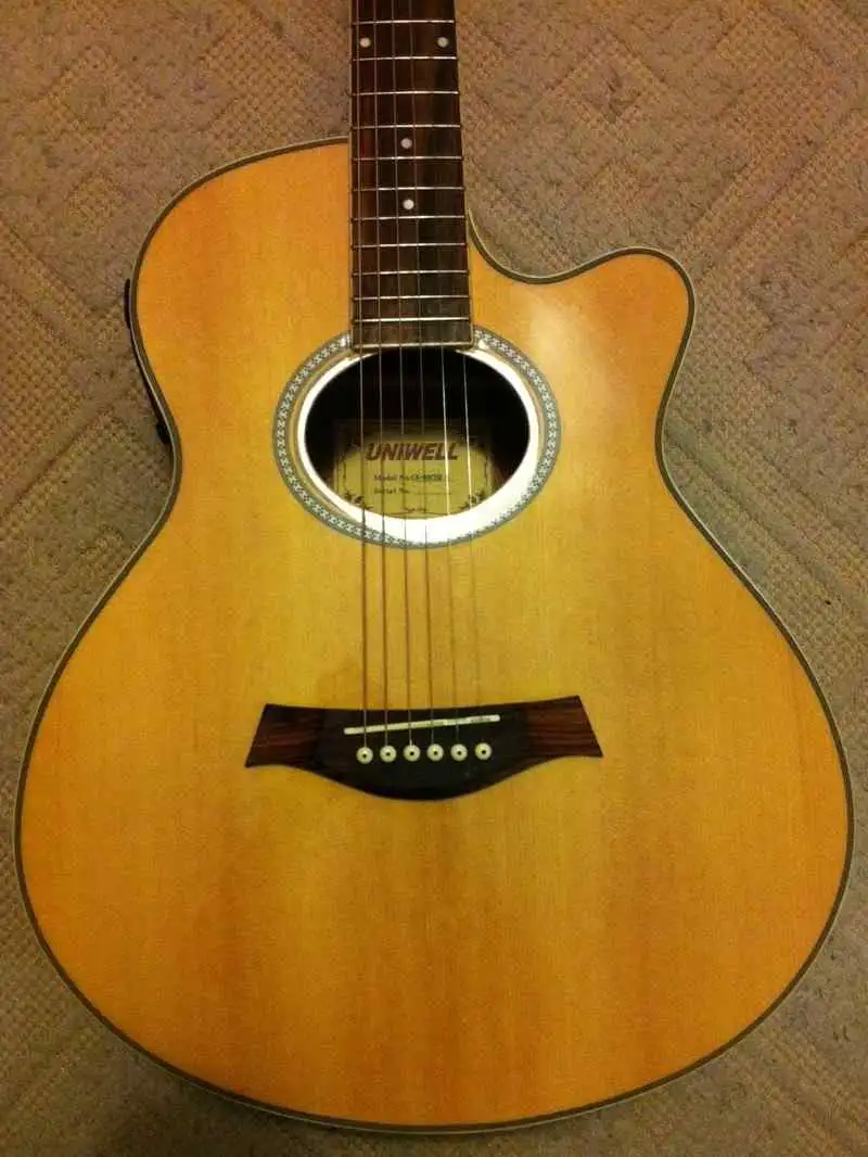 huendeskesMahagóni hátlap és káva, lucfenyő fedlap, rózsafa fogólap és húrláb, cutaway, 4 sávos EQ, új (= valóban használatlan) Martin foszfor-bronz húrok. A gitár jó állapotban van, aktív elektronikája 1x volt kipróbálva, összesen 4-5 alkalommal volt használva. Eladás oka: Abszolút nem használom. Leginkább mailben keressetek/nek, legkésőbb aznap este válaszolok. Zuglóban lehet kipróbálni a hangszert.