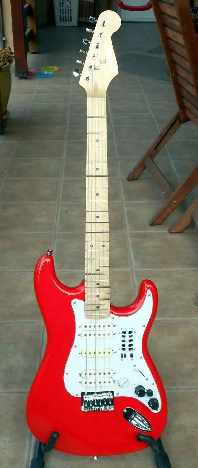 huendeskesEladó Uniwell matricás csodaszép piros eredeti kínai, fix húrlábas Stratocaster jellegű, erősen tuningolt gitár. Barkácsolós korszakom egyik darabja. Került bele 5db Square Infinity-ből származó single coil hangszedő. Rengeteg módon kapcsolhatók. Megtalálható a Brian May féle fázisfordítható soros kapcsolás, valamint rengeteg hagyományos párhuzamos eset. Két-két pár single coil humbucker-ként is kapcsolható.