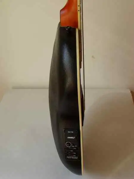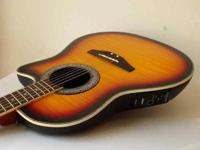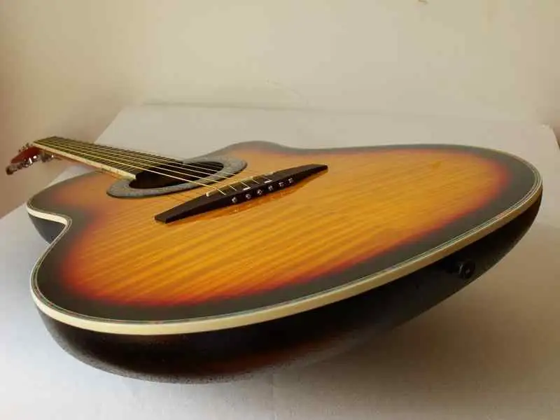 huendeskesTeknőhátú elektroakusztikus gitár, szép kidolgozás, piezoszedő, négysávos hangszínszabályzó, gyönyörű mintás fedlap sunburst színben, vadonatúj; nálam, a Blahánál ki is próbálható.