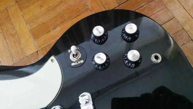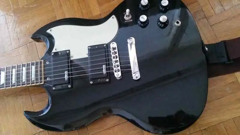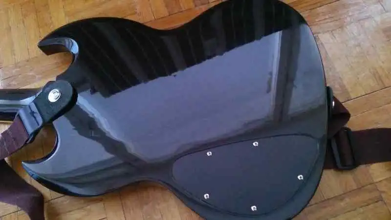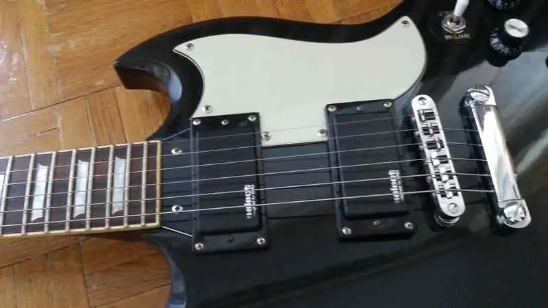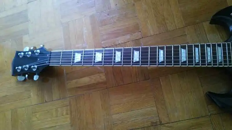 A gitáron annyi változás történt, hogy kapot egy fehér, 3rétegű koptatólapot, és egy kapcsolósapit! (pici leverődés a hátulján, lefotóztam)