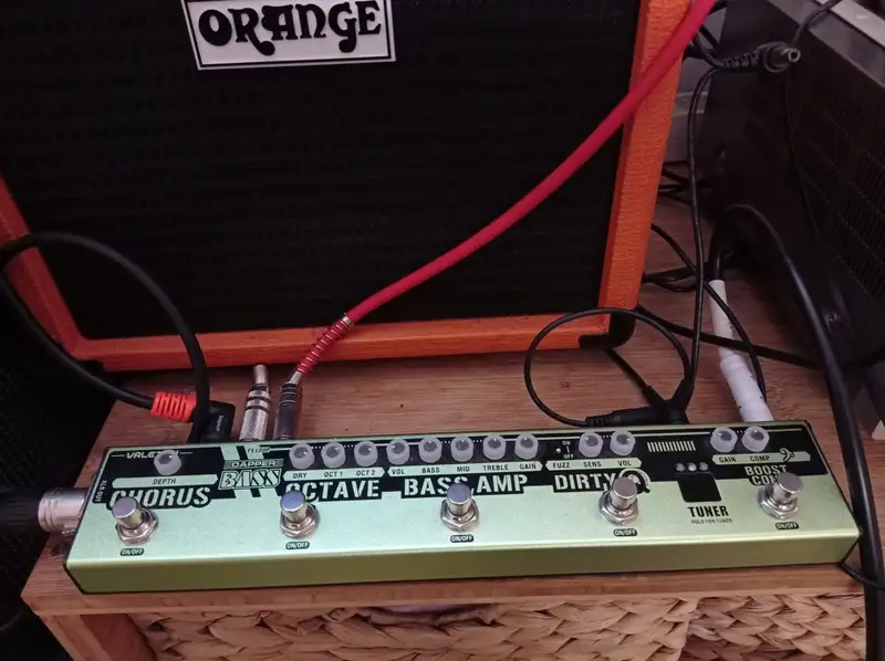 2020.05.14 vásárolt pedál strip, újszerű állapotban csak otthon használt kézzel kapcsoltKompakt multifunkciós effektsín 5 effektel és beépített hangolóval basszusgitárhoz.
