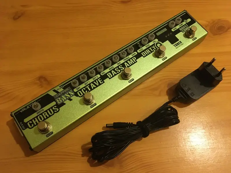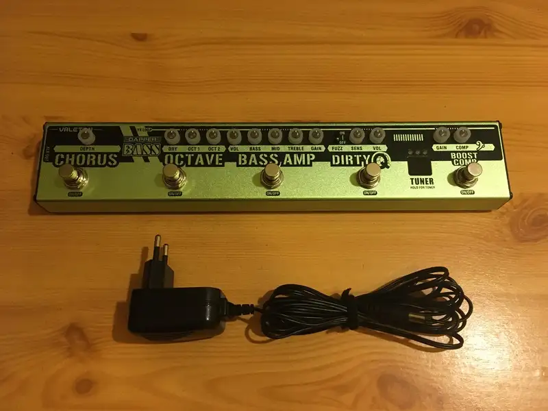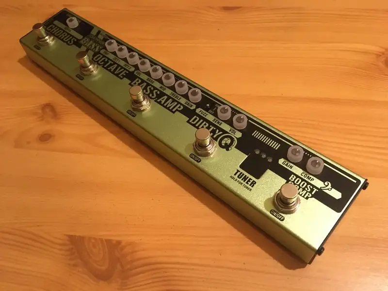 Kompakt multifunkciós effektsín 5 effektel és beépített hangolóval, alkalmas basszusgitárhoz. Ellenálló fém szerkezet, jack bemenet, XLR és Jack kimenet, beépített effektkör, thru jack csatlakozó a DI box közvetlen csatlakoztatásához és különálló kapcsoló minden effekt számára. Saját vezérlőgombok minden effekthez. Kromatikus hangológép, Boost és Kompresszor, Autowah (Envelope Filter), Fuzz, Előfok 3 sávos hangszín szabályozással, Volume és Gain szabályozókkal, analóg OCTAVER-ral két oktáv keveréssel, potméterrel a tiszta és az effektjel keveréséhez, Chorus effekt szabályozható oszcilláló mélységgel. Grould lift funkció. Tápellátás szabványos 9V center negative tápegységgel. Méretek: 320 x 65 x 42 mm, súly: 690 g.Tartozék gyári 9V táp. Nagyon sokoldalú, profi felszerelés, keveset használt, gyári állapotban.