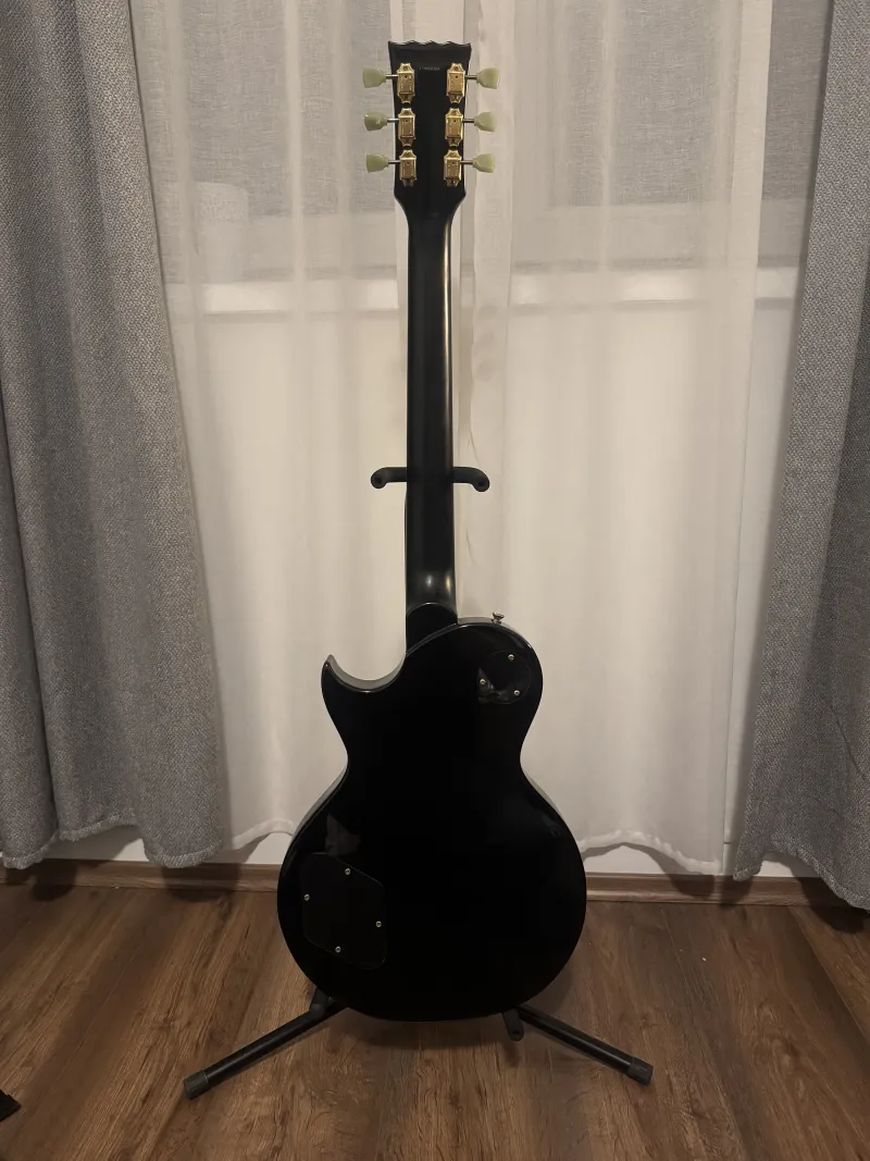 Sziasztok! Kihasználatlanság miatt eladóvá vált egy fekete Vintage V100-as Les Paul hangszer. Egy szerencsétlen letámasztás következményeként a fejen van egy nagyobb festéklepattanás, illetve a pickup kapcsoló műanyag burkolata eltört. Ezeket a képeken láthattok.Ettől eltekintve szép állapotban van, szobán kívül mindössze párszor járt, műszakilag is tökéletes. Fontos még hogy a nyak enyhe csiszoláson esett át, így a vastag lakk nagy része lekerült.