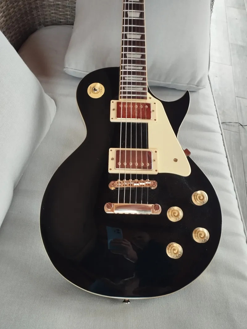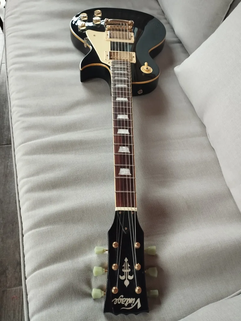 Első szériás koreai v100. Még a Gibson féle nyak illesztés. Arany hardverek és magas fényű lakkozás. Wilkinson pukik.A fején bibis ezért a kedvező ár.Szállítás