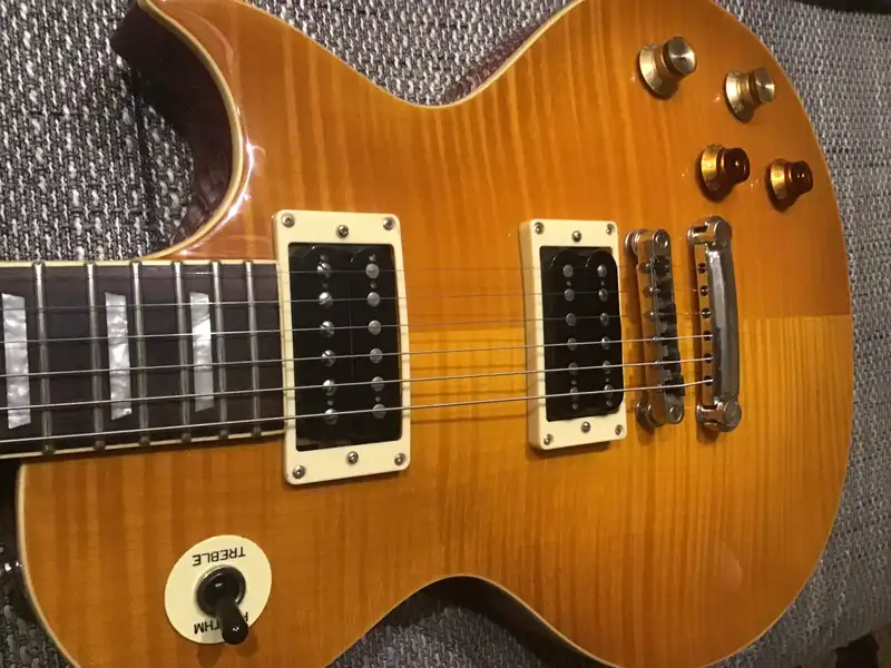 graptech húrbaba, Gotoh satus kulcsok, Seymour Duncan Slash szedő szett potikkal, orange drop kondi, japán kapcsolóval, friss 10es Dean Markley húrokkal hadra készen vihető! A videóban a gyári szedők hallhatóak..