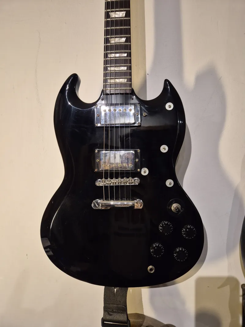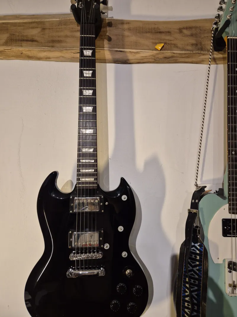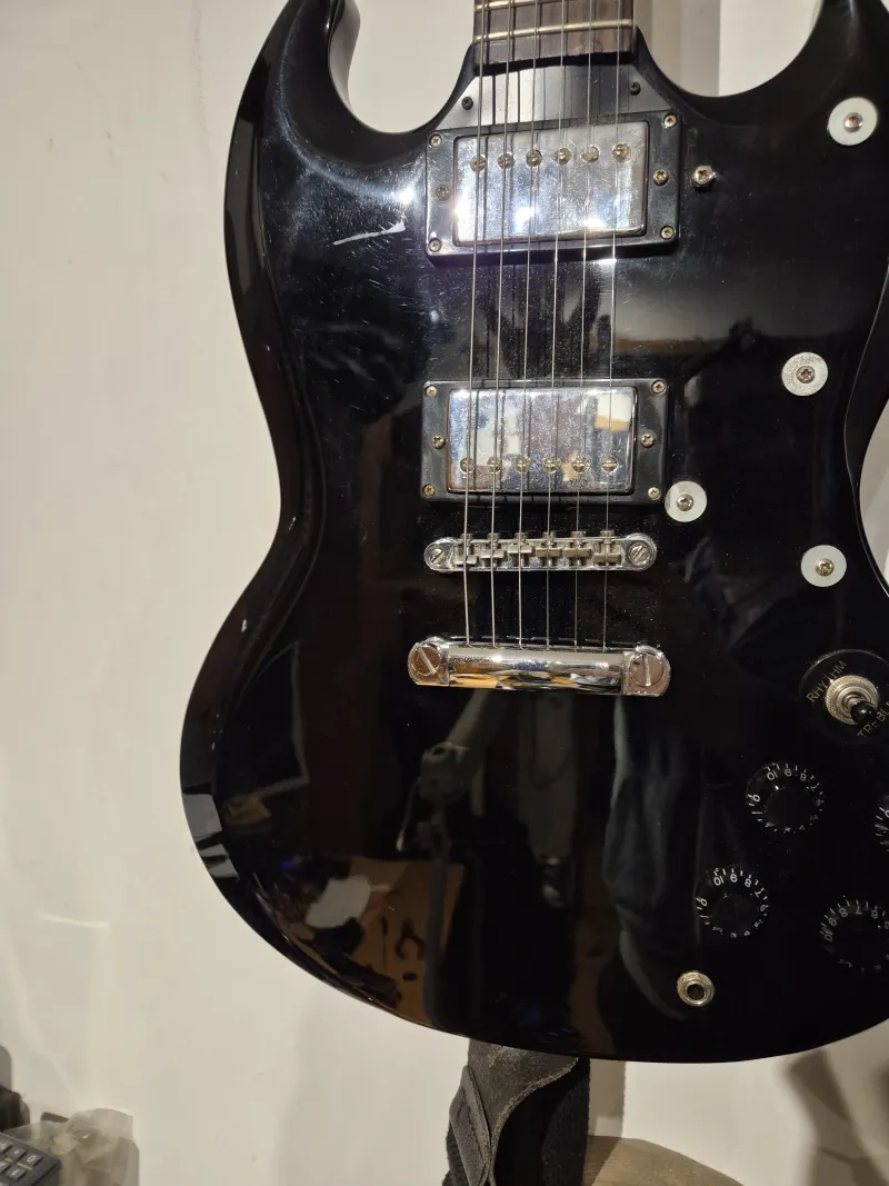 A gitár igazi SG, kényelmes, gyors, fejnehéz..