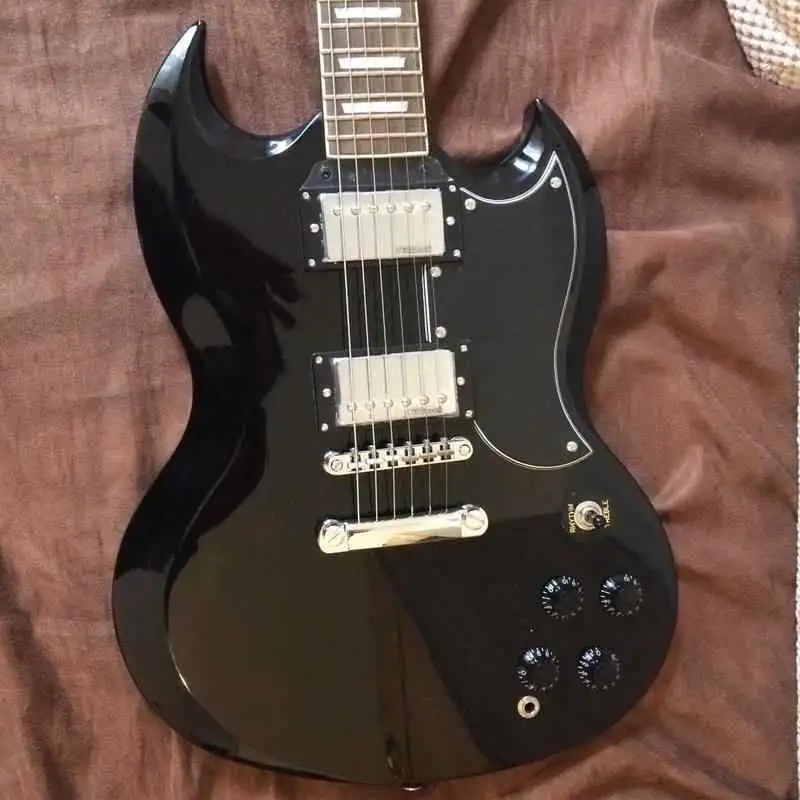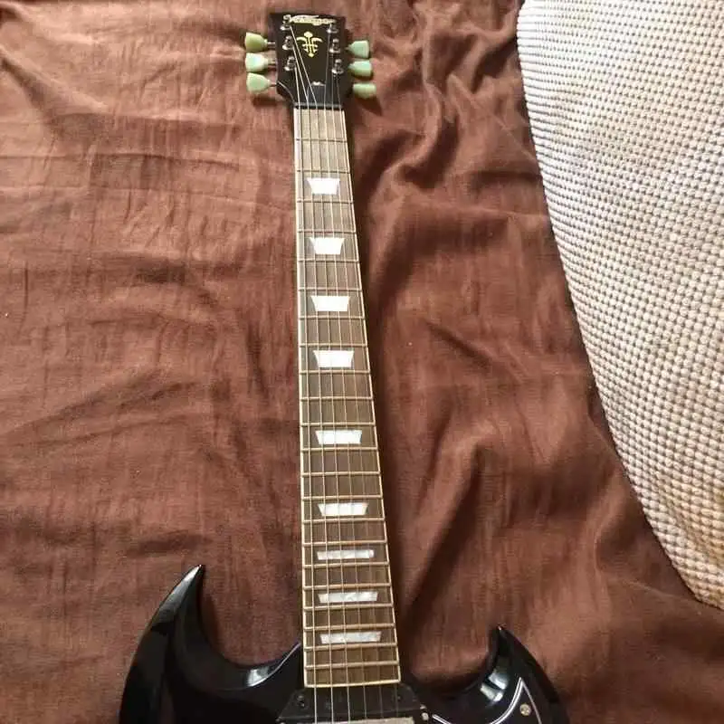 Vintage VS6 Fekete SG formájú elektromos gitár, ajándék bélelt vízálló puhatokkal.