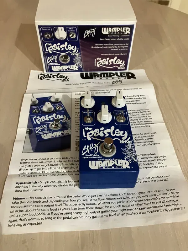 Eladó a képeken látható, újszerű Wampler Brad Paisley nevével fémjelzett (USA handmade) overdrive gitár pedál.Rendkívül sokoldalú cucc, amelynek hangzásvilága igencsak széles skálán mozog: a tiszta overdrive-tól a mocskosabb distortion hangzásig bármit ki lehet csalogatni belőle.