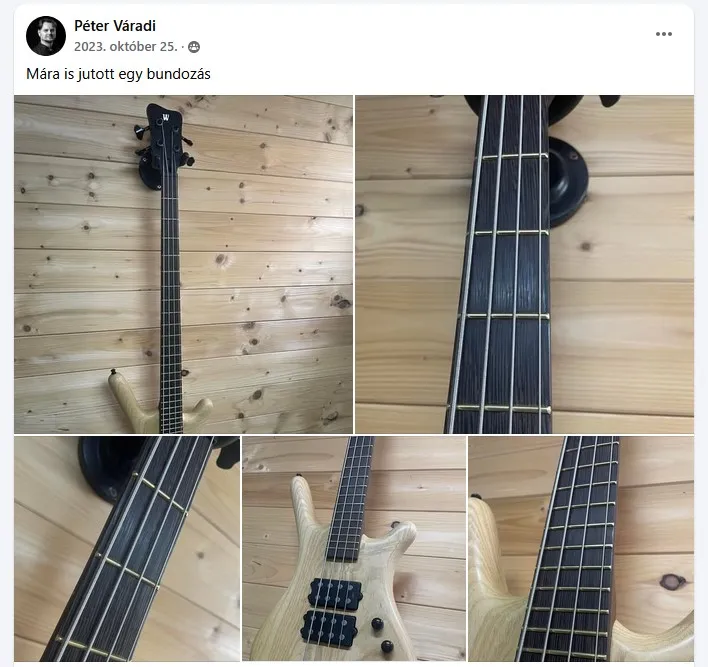 2023 október: újrabundozás Váradi Péter / Peter Crow Guitars által, gyári bundokkal (Warwick SP W 30100)