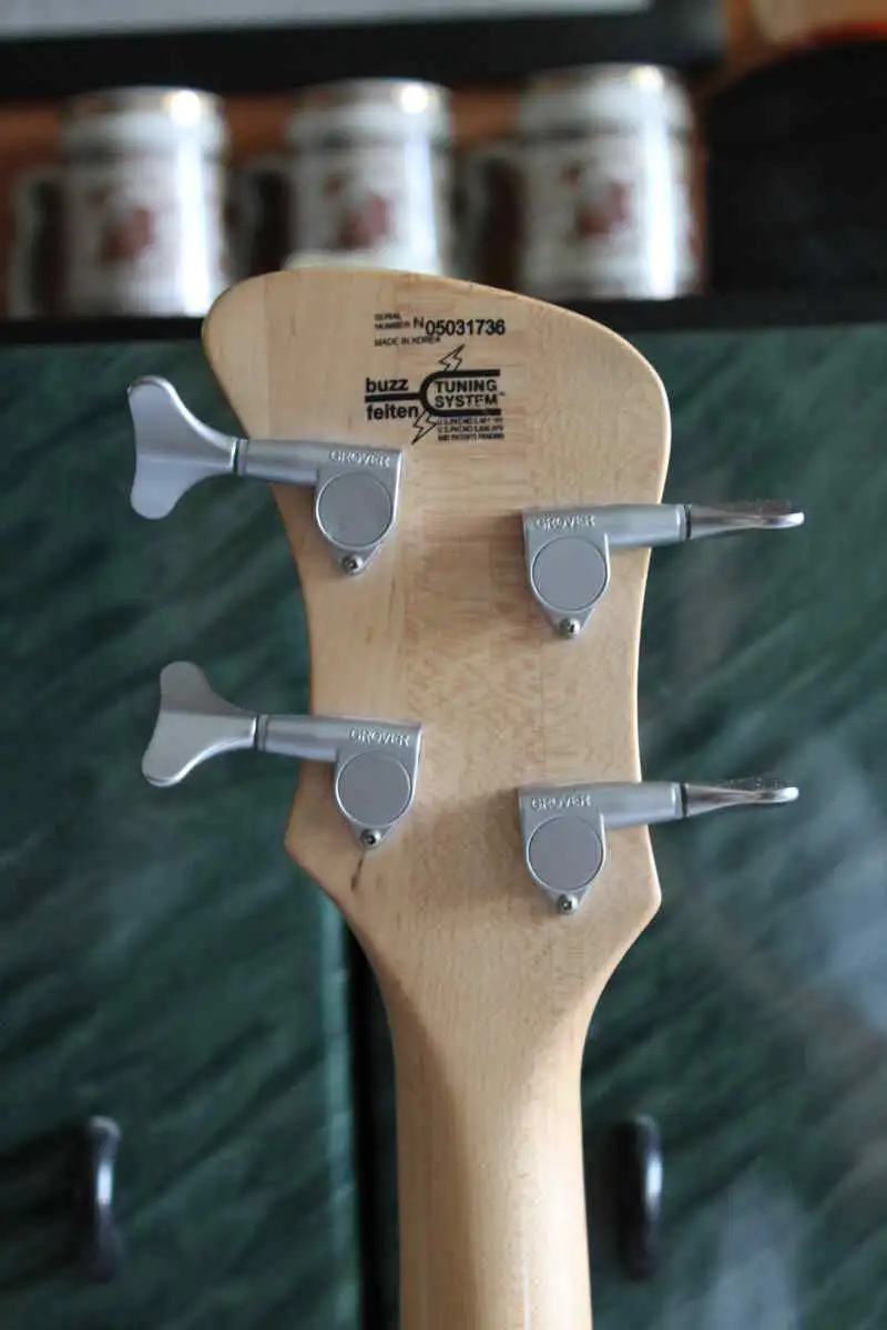 Nagyon kényelmes, dögös hangú hangszer, kicsi húrnyomással. Grover hangolókulcsokkal szerelve.