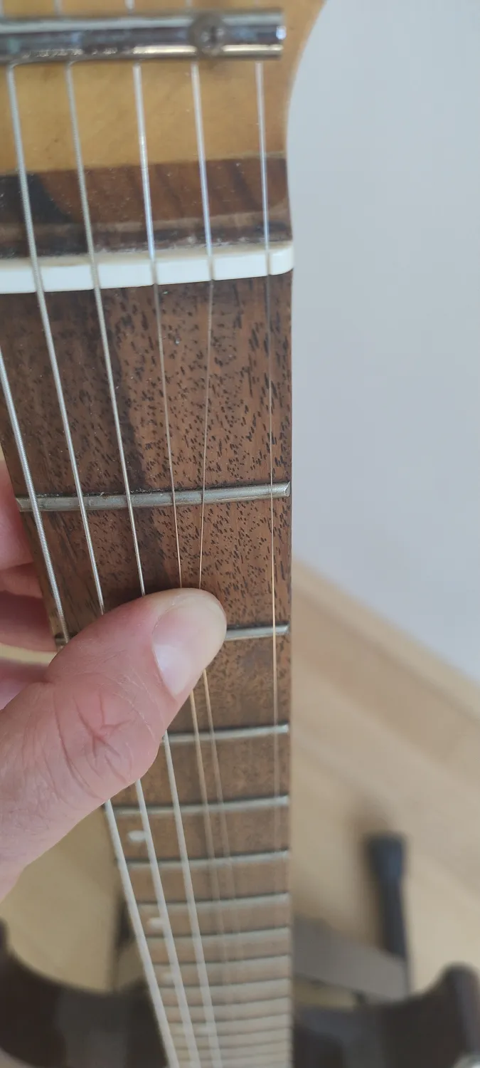 Katalógus szerint 1993-as vagy 1994-es kóreai. Az előző tulaj fali dekorációnak használta. Ezt támasztja alá, hogy a test hátulján ott vannak karcok, ahol a falhoz ért és nem a szokásos helyen, ahol a nadrágövcsat ki szokta kezdeni. A test elöl és a nyak karcmentes,és a bundok is eredetiek. A humbucker felezhető.Szállítás
