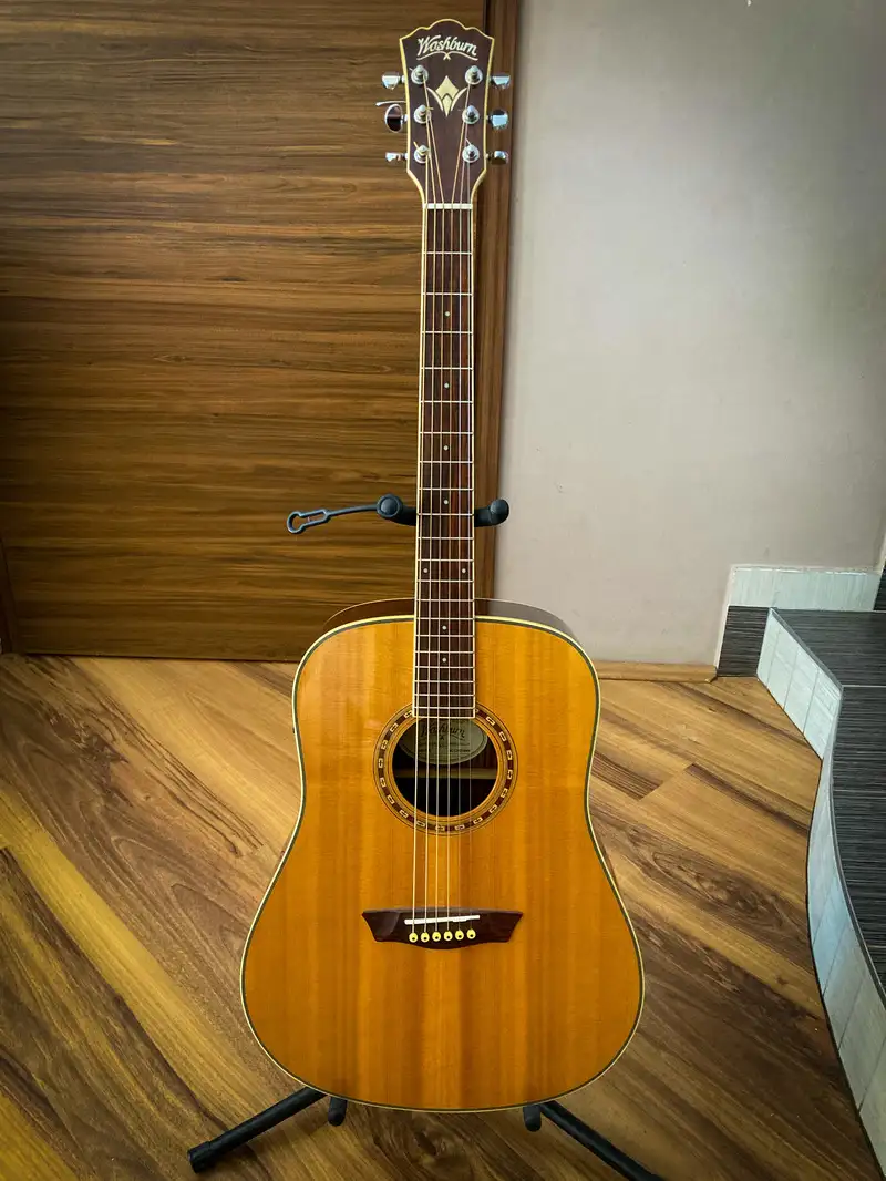 Eladó alig használt Washburn WD20S akusztikus gitár Fishman Blend (piezo+mic) elektronikával. Az elektronika nem ebay-es vásárlás, hanem európai, hivatalos forrásból származik.Tömör fenyő fedlap, laminált rózsafa oldal és hát, satin nyak-lakkozás.