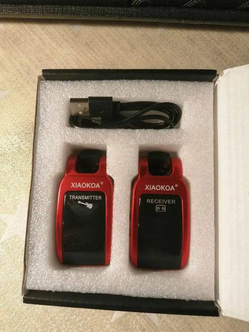 Eladó dobozában egy új állapotban lévő jól működő vezetéknélküli gitár wireless. adó-vevő.A Xiaokoa vezeték nélküli gitár adóvevő LED digitális kijelzővel van ellátva,elektromos gitár és basszus hangszerekhez