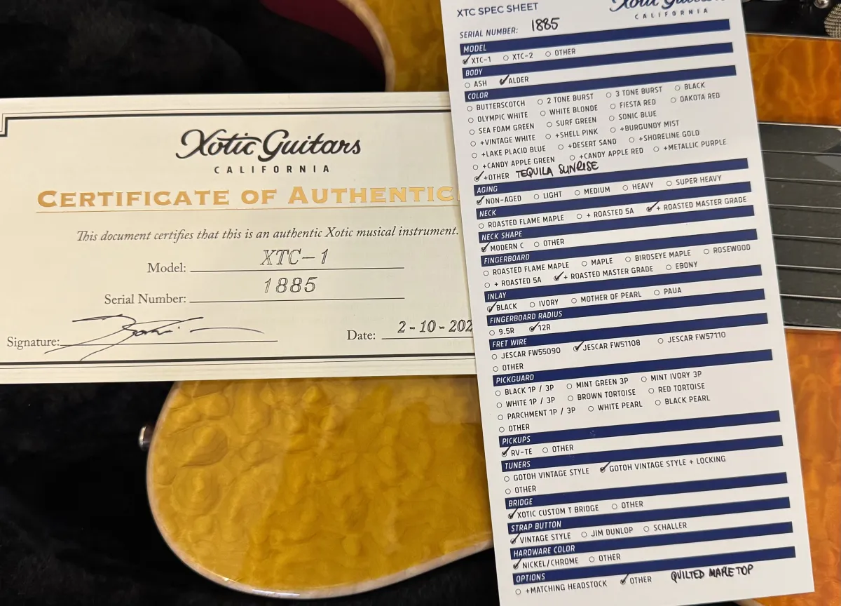 Nagyon szép állapotú hangszer, 1db kicsi sérülés van rajta, amit fotóztam, azt leszámítva hibátlan. A Xotic csúcs kategóriája, kitűnő anyagokból, remek játékérzettel. Csere nem érdekel, beszámítás lehetséges.