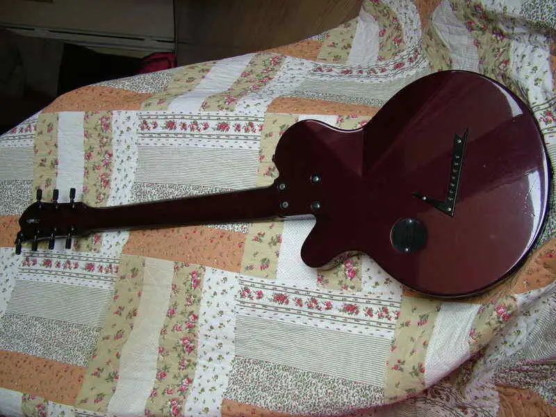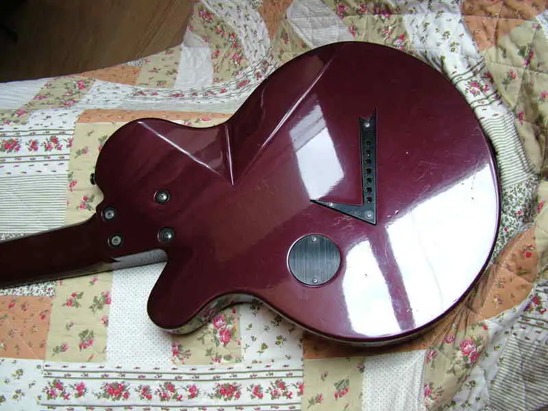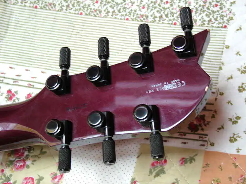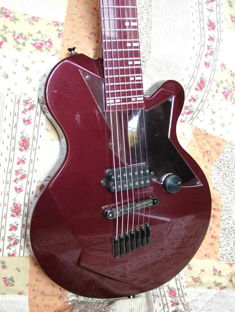 huendeskesÉger test, csavarozott jávor nyak, jávor fogólap, 26˝ menzúra, custom DiMarzio elektronika, LSR kulcsok, néhány leverődés itt-ott, made in Japan. Igazi szörnyeteg, iszonyat gyors attack jellemzi a hangját, a Les Paul-jellegű testforma ellenére simán hozza a modern djent hangzásokat is. A nyaka vékony, jól játszható, magas fekvésekben is kényelmesen elérhetők a hangok. A hosszabb menzúra miatt extrém lehangolásra is alkalmas (én drop G-ben használom). Igény szerint Dunlop straplockot adok hozzá. Az ár irányár, alkudni ér.