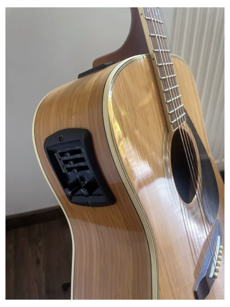 Yamaha FGX-B1n / Ultra Rare Bamboo Electro-Acoustic GuitarA rare, limited-edition Yamaha electro-acoustic guitar featuring a bamboo top, rosewood fretboard, nyatoh neck, and die-cast gold tuners.