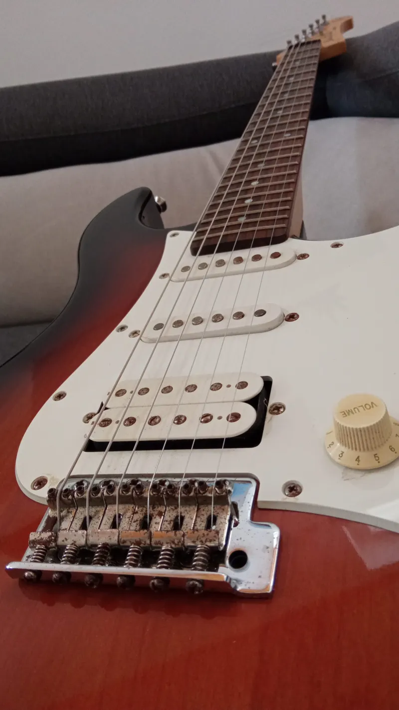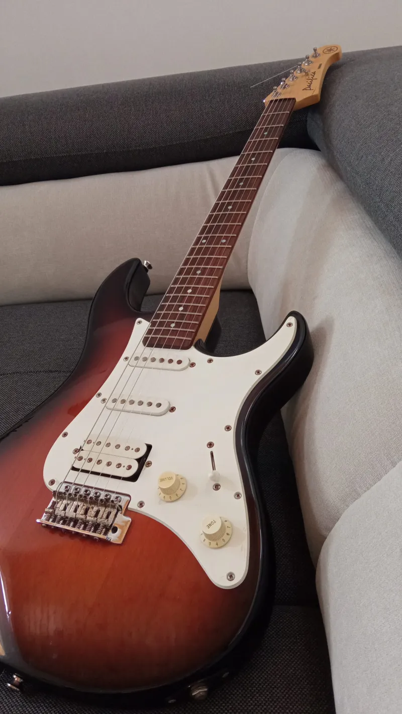 Új húrokkal, jó állapotban. Kitűnő tanuló gitár! Nagyon szép tobacco burst színben.Kapcsolódó hangszerteszt (1)