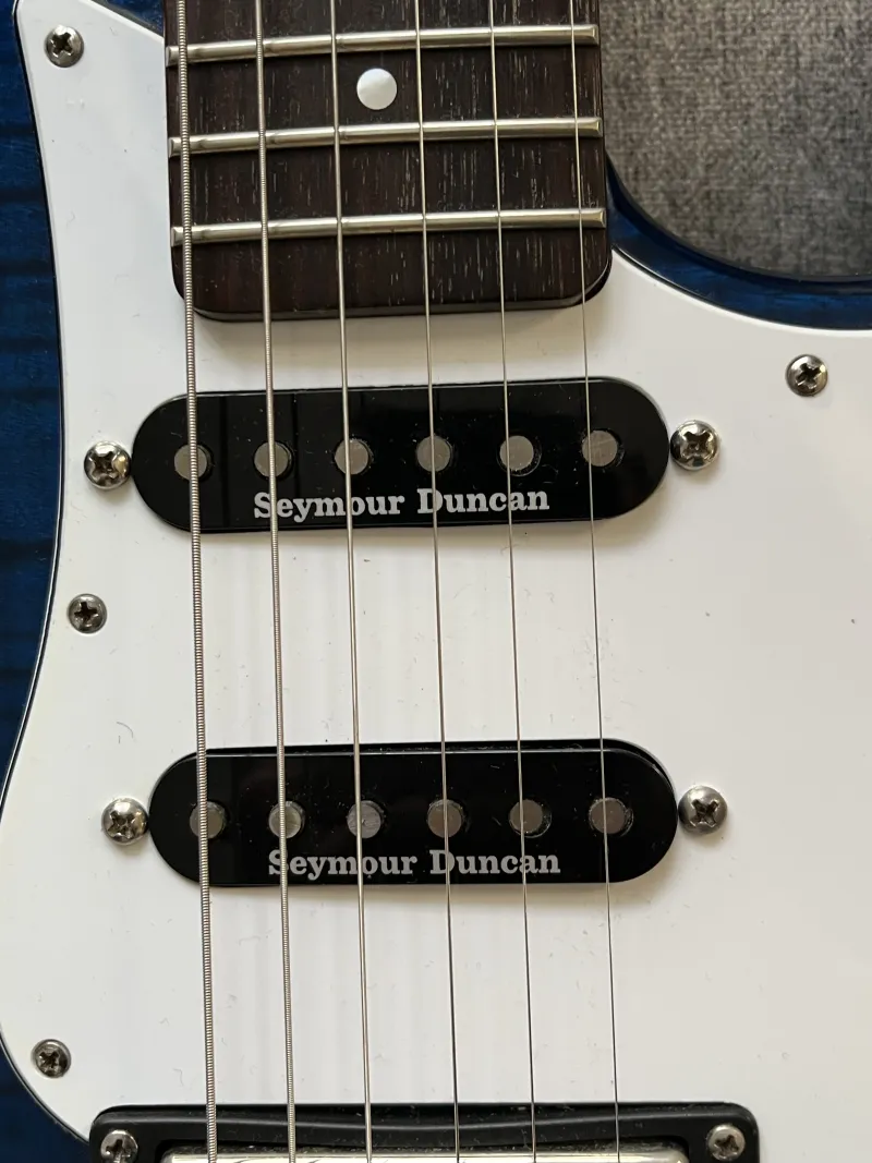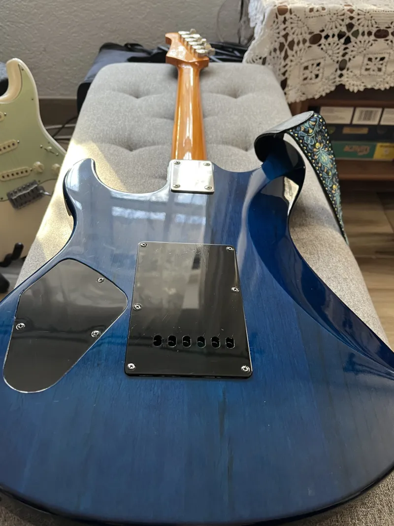 Gyönyörű hangszer, fehér koptatóval van most szerelve, de az eredeti fekete is jár hozzá természetesen, a tremolórendszert Göldo-ra cseréltem rozsdamentes acél babái vannak, az eredeti Wilkinsont is adom hozzá. Az eredeti fémgombok is megvannak, csak ezeket én jobban szeretem. Nem állítom, hogy karcmentes, de én még nem találtam rajta minimális sérülést sem. A hangolást nagyszerűen tartja. A lebegőre beállított tremoló nagyon stabil a Grover kulcsoknak- és nem utolsó sorban a jó beállításnak - köszönhetően.