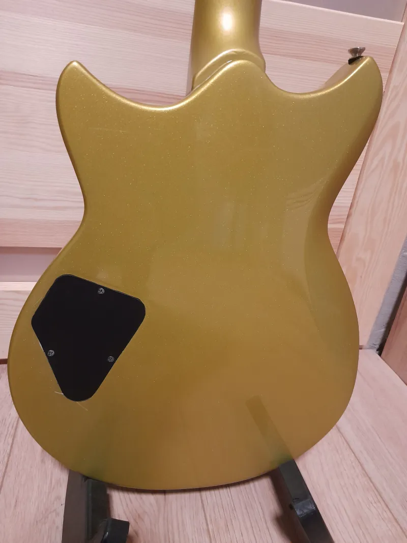 Jó faanyagok (mahagóni test és nyak, rózsafa fogó). A fogólap szépen lekezelve.