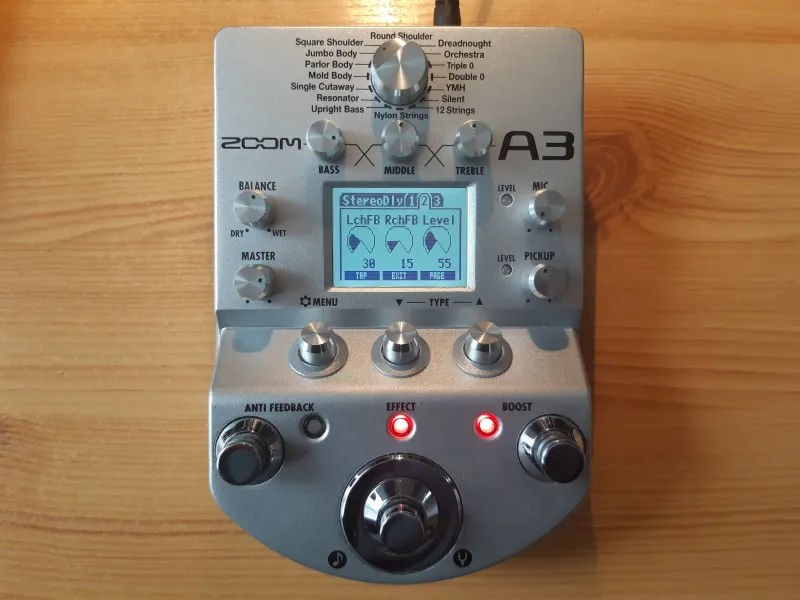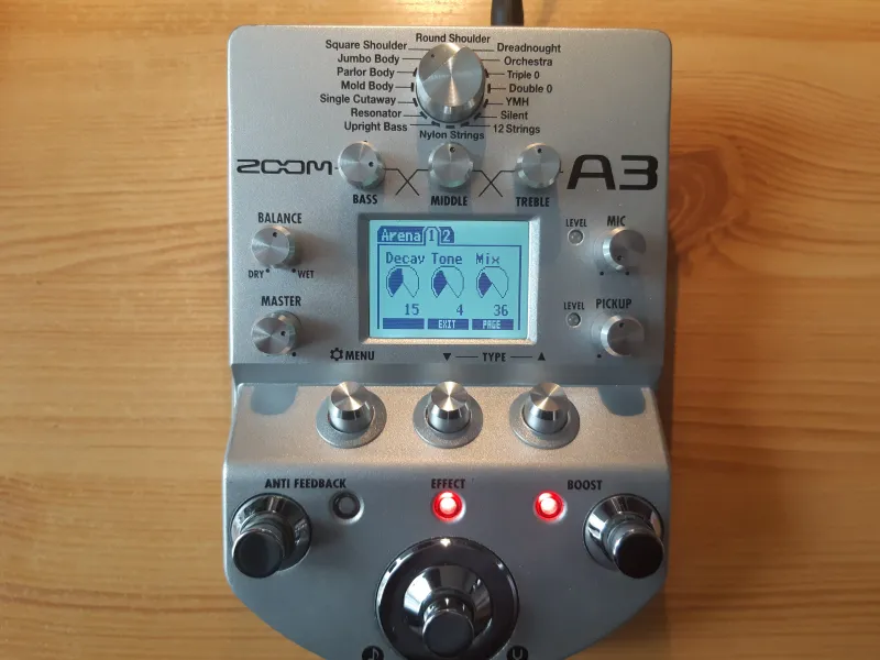Eladó egy megkímélt, újszerű, Zoom A3 Akusztikus Gitár Multieffekt, gyári adapterrel.Mikrofon bemenettel is rendelkezik, így a mokrofon és a piezzo jelet is lehet keverni.