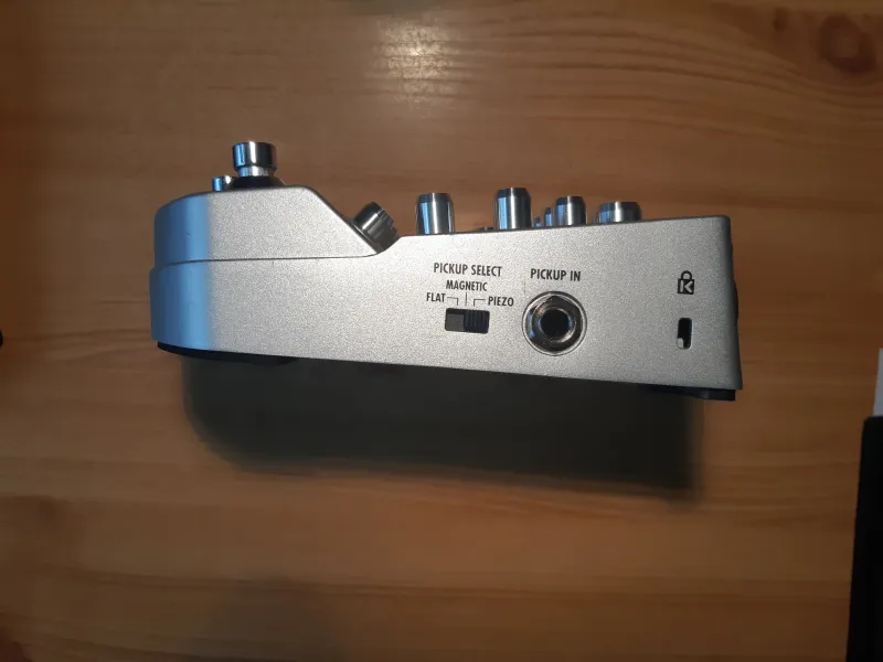 Vezérlők: 3 lábkapcsoló, body type selector, mély-közép-magas EQ, dry-wet balansz, master hangerő, parameter, mic gain (mikrofon érzékenység), pickup gain (pickup jelerősség), anti-feedback kapcsoló,