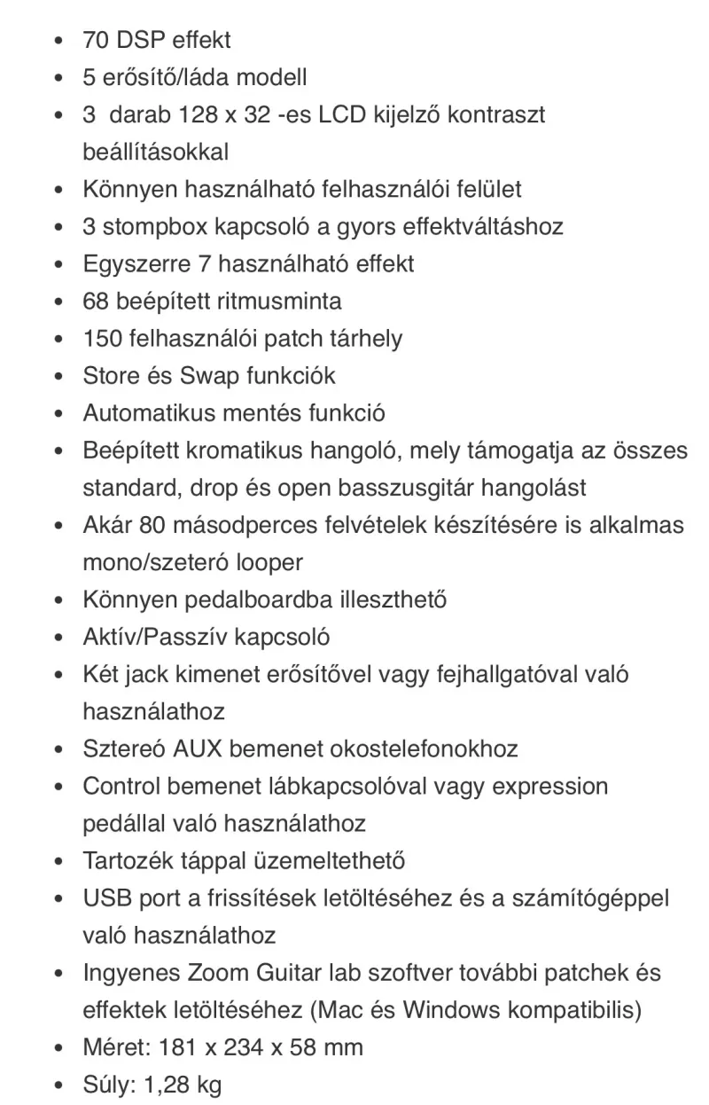 Effektek, erősítő- láda- tér-szimulációk, looper, dobgép. Pár koncerten volt de javarészt szobában, próbateremben használtam. 2019-ben vásároltam újan. Minden gomb, kapcsoló, poti hibátlanul működig. Pár apró karctól eltekintve újszerű. Expression pedálon a ragasztó csak esztétikai célt szolgál. Képek közé beteszem a leírását. Átvehető, kipróbálható Ajkán, természetesen futárral is küldöm előre utalás után a vevő terhére és felelősségére.