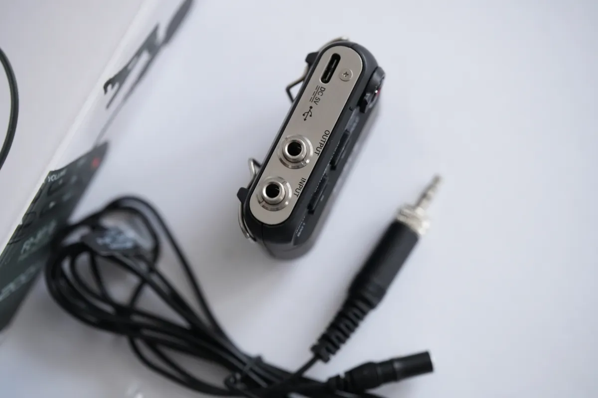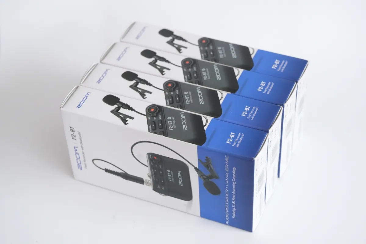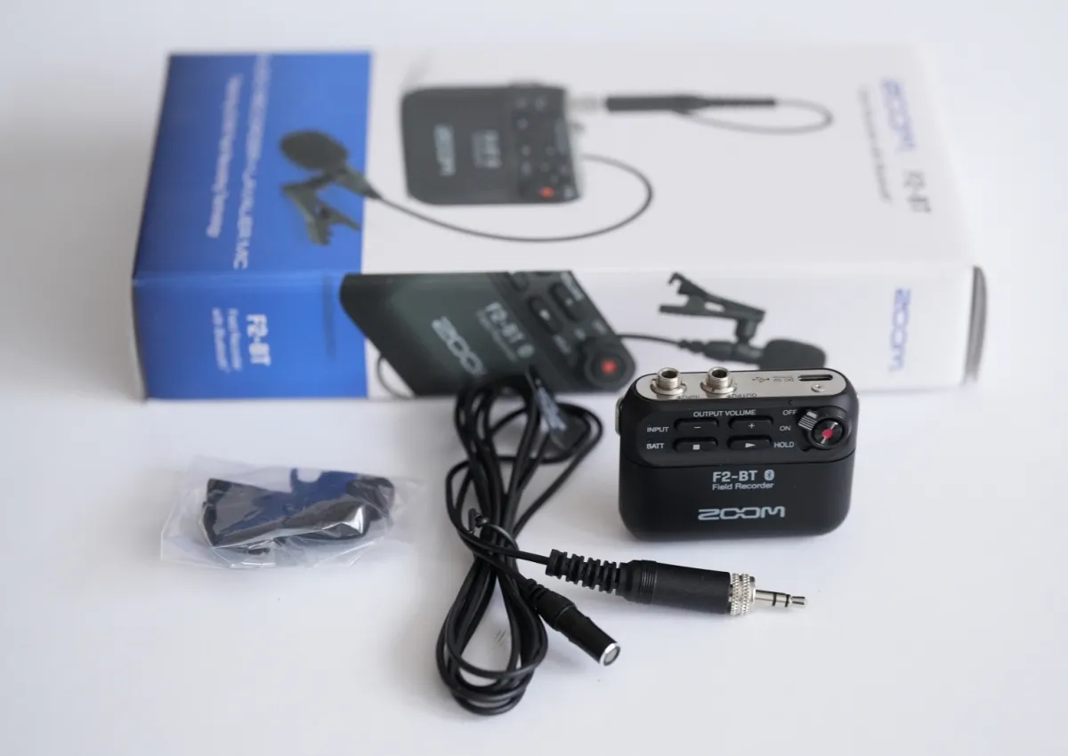 Nagyfelbontású 32 bit 48 kHz hangfelvevő csíptethető mikrofonnal, bluetooth vezérléssel, dobozában, tartozékaival.