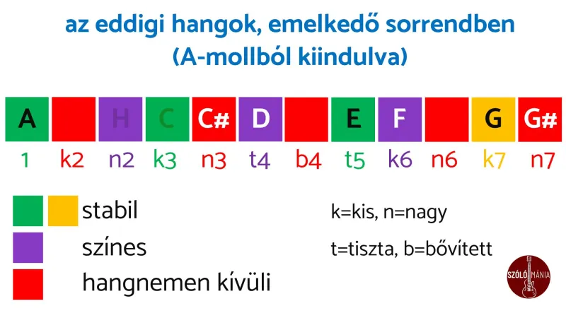 Ez a 7 hang nem egy hivatalos skála. Egy új riff néhány hangját látod.