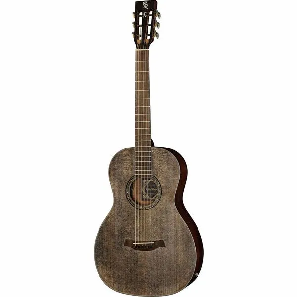 Steel-String Guitar with Pickup Design: Parlor 12 Top: Spruce Back & sides: Mahogany Neck: Mahogany Slotted headstock Fretboard & Bridge: Ovangkol Bindings: rw ABS Scale length: 630 mm Nut width: 46 mm Nut and saddle: Nubone 19 Frets Pickup system BR-1 Open antique chrome machine heads Strings: D´Addario EXP11 Finish: Open-pored Colour: Screwed Charcoal matt 30 30-Day Money-Back Guarantee 3 3-Year Thomann Warranty Available since May 2020 Item number 494142 Sales Unit 1 piece(s) Model Parlor Top Spruce Back And Sides Mahogany Cutaway No Fretboard Ovangkol Nut width in mm 46,00 mm Pickup System Yes Colour Gray Case No Incl.Gigbag No