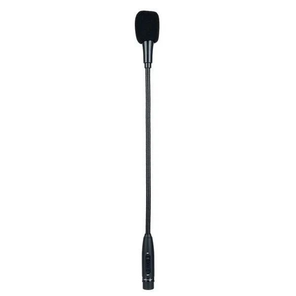 Dynamic Gooseneck Microphone For speech applications Ideal as a command microphone for studios, podiums, conferences and desktop PCs Cardioid polar pattern minimises background noise and feedback Flexible gooseneck Onoff switch for muting during breaks Effective wind and pop noise filter included Gooseneck length: 280 mm Frequency response: 50 - 18,000 Hz Impedance: 500 Ohm Sensitivity: -53 dB ±3 dB @ 1 kHz (1 V Pa) Dimensions (LxD): 460 x 38 mm Weight: 236 g 3030-Day Money-Back Guarantee 33-Year Thomann Warranty Available since May 2020 Item number 483639 Sales Unit 1 piece(s) Polar Pattern Cardioid Capsule DynamicTeszt