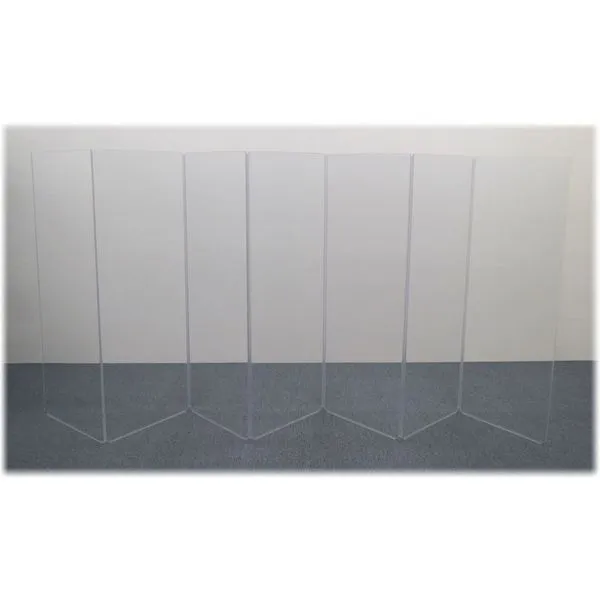 7-Segment Panel For live and studio applications Sound shielding from drum kits, amplifiers or instruments Easy handling by folding in accordion-style Made of high-quality, laser-cut acrylic Consists of 7 panels with connectors (hinges) Each panel is 6.35 mm thick, 1670 mm high, and 600 mm wide Indispensable for volume control on stage and in the studio and for a clean mix Weight: approx.