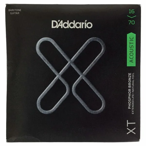String Set for Baritone Acoustic Guitar Material (winding wire): Phosphor Bronze Winding type: Round Wound A microscopically thin, moisture-repellent coating on all 6 strings does not affect the tone or the feel of the instrument Made of HIGH CARBON NEW YORK STEEL and in combination with FUSION TWIST for fastening the ball ends, the strings provide highest tensile strength and tuning stability String gauges: 16, 22, 29, 48, 60, 70 Available since June 2021 Item number 520548 Sales Unit 1 piece(s) Strength of the strings 0,0160 – 0,0700 Material Phosphor Bronze