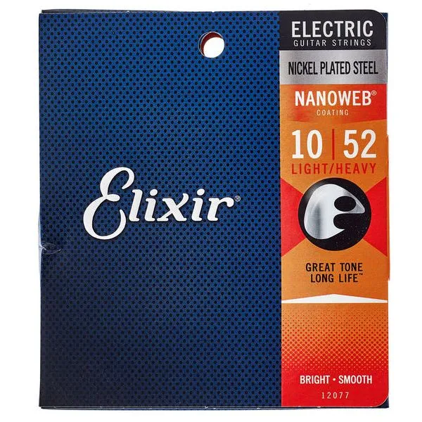 String Set for Electric Guitars Light heavy gauge Nano web Gauge: 010-052 String gauges: 010-013 - 017-032 - 042-052 Available since March 2002 Item number 152176 Sales Unit 1 piece(s) String gauge 010 - 052 Strength of the strings 0,010 – 0,052 Material Cortex