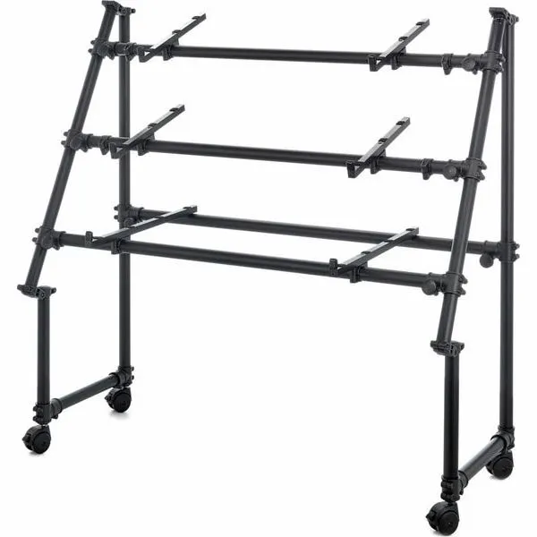 Keyboard Stand For 3 keyboards Made of black powder-coated aluminium With castors, 2 of which are lockable With handwheels and memory clamps for the upper shelves The lower section, reinforced by a second tube, has a pair of 60 cm long supports and is also suitable for particularly heavy keyboards The other supports are 40 cm long Load capacity: Lower shelf up to 40 kg upper shelves up to 15 kg (or more, with shelf reinforcement as below) All shelves are height-adjustable and tiltable Inner width: 105 cm Dimensions (H x W x D): 128 x 115 x 50 cm Made in Germany Suitable accessories: Additional pairs of shelves, monitor support, micro swivel arm, music stand, laptop shelf (not included) 3030-Day Money-Back Guarantee 33-Year Thomann Warranty Available since July 2020 Item number 495815 Sales Unit 1 piece(s) Keyboard Supports 3