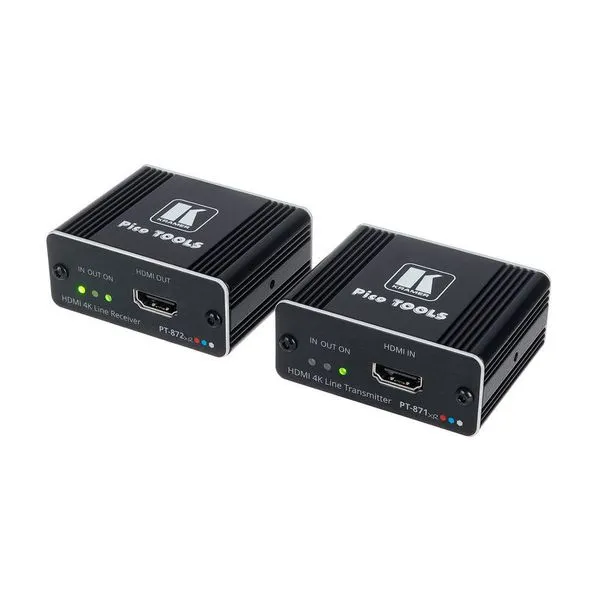 Set 4K HDR HDMI PoC extendertransmitter via DGKat 2.0 for long ranges Set consists of PT-871xr transmitter and PT-872xr receiver The HDMI signal is converted into a DGKat 2.