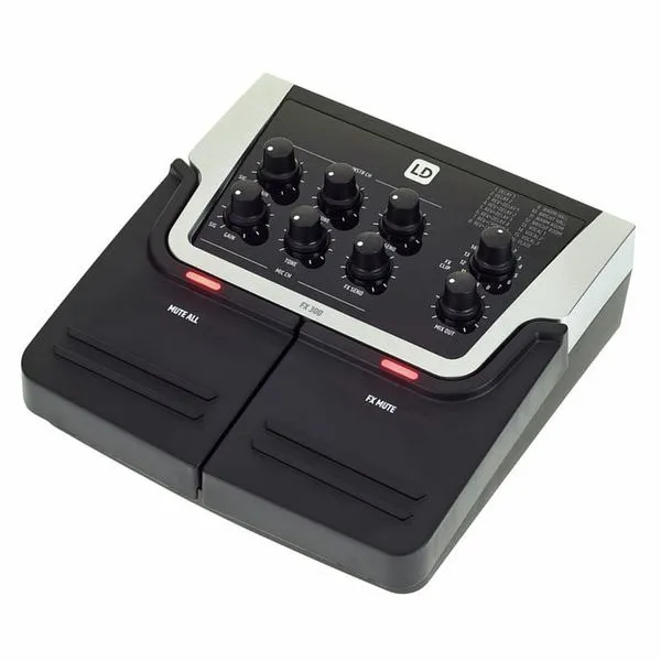 2-Channel multi-effect pedal 16 Digital effects presets in 16-bit quality Mic input for dynamic and condenser microphones Low noise instrument input with high input impedance for acoustic guitars, bass or other instruments Separate FX sends for both channels Additional FX loop for the instrument input HPF and +48 V phantom power for microphone input Signal peak LEDs for both channels Clip LED for the effect FX MUTE pedal to mute the effects MUTE ALL pedal to mute the outputs Balanced and unbalanced output Power consumption: 250 mA Operation with 9 V battery or power supply ( Art.491756, not included) Dimensions (W x H x D): 160 x 55 x 163 mm Weight: 0.