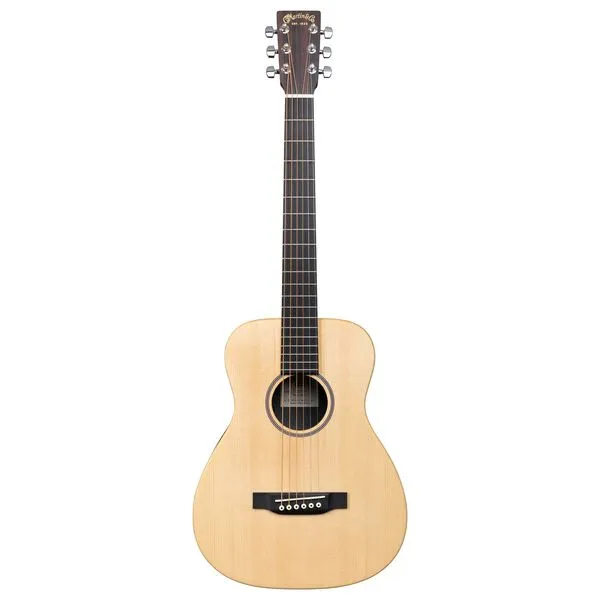 Acoustic Guitar with Pickup Style: LX - Little Martin Top: solid spruce Back and sides: Mahogany high-pressure laminate (HPL) Neck: Rust birch laminate Fingerboard: Richlite Fingerboard inlays: White side dots Nut: white Corian Nut width: 42.9 mm Scale: 584 mm 20 Frets Rosette: Multi Stripe Pickup system: Fishman Sonitone Bridge Material: Richlite Nut: Compensated White TUSQ Encapsulated chrome tuners Strings: MA550T Authentic Treated Medium (Art.