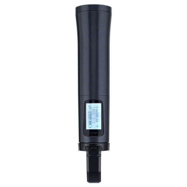 Handheld Transmitter for the EW 100 G4 Systems Frequency range: B-Band 626-668 MHz Backlit display Charging contacts Operates with 2x 1.5 V AA batteries Pilot tone Including MZQ1 microphone clamp and batteries Note: Capsule not included.
