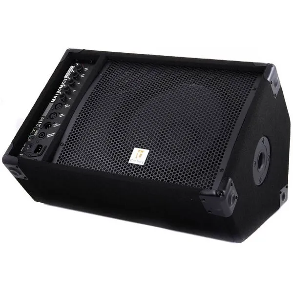 Active 2-Way Monitor Loudspeaker: 12 Woofer and tweeter Power: 120 W RMS at 4 ohm Max.SPL: 120 dB 1 Line- and 1 microphone input (both XLR) 3-Band EQ Gain- and level control XLR output for connection of another active monitor, as well as a speaker twist output for connecting a passive monitor Additional speaker stand flange mount and rubber feet on the side Optional suitable cover: Article 242909 Dimensions: 370 x 580 x 420 mm Weight: 16.