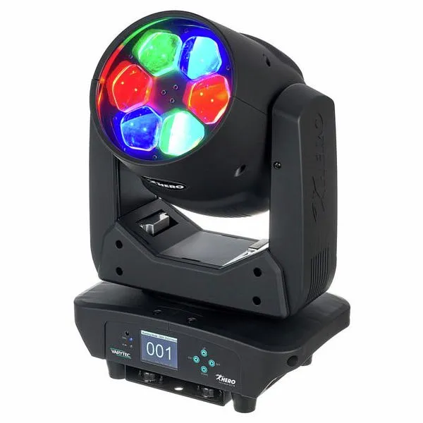 Wash Moving Head with Blade Effect Rotatable lens unit provides its own special effect Together with a large zoom range, which spans a narrow 4° beam to a wide 60° wash, you have the ideal combination of three devices at your fingertips Uniform illumination of the cone of light Sophisticated fan management system with three selectable modes: Silent, Max, Auto Adjustable pan and tilt range with selectable start and end point Four selectable dimmer curves Adjustable PWM Automatic pan and tilt correction Includes 2x Omega brackets with Quick-Lock Technical specifications: Light sources: 6x 40W RGBW 4-in-1 LED by Osram 3 Separately controllable segments with 2 LEDs each Beam angle: Motorised zoom: 4° - 60° Lux @ 5m (4°): 16,000 Electronic dimmer: 0 - 100% Electronic shutter: 0 - 20 Hz Continuous FX rotation 16-Bit pantilt: 540° 220° Control: DMX (1025 channels), masterslave, automatic integrated programs, music control, 4-button LCD display Black housing made from metal and plastic Connections: DMX input and output: XLR 3-pin + 5-pin Power input and output: Power Twist Power supply: 100 - 240 V AC ~ 5060 Hz Power consumption: 280 W Dimensions (W x H x D): 303 x 425 x 188 mm Weight: 11.0 kg 30 30-Day Money-Back Guarantee 3 3-Year Thomann Warranty Available since February 2021 Item number 477541 Sales Unit 1 piece(s) Type of lamp LED Light output 240 W Colour Mixing RGBW Motorized Zoom Yes Show more