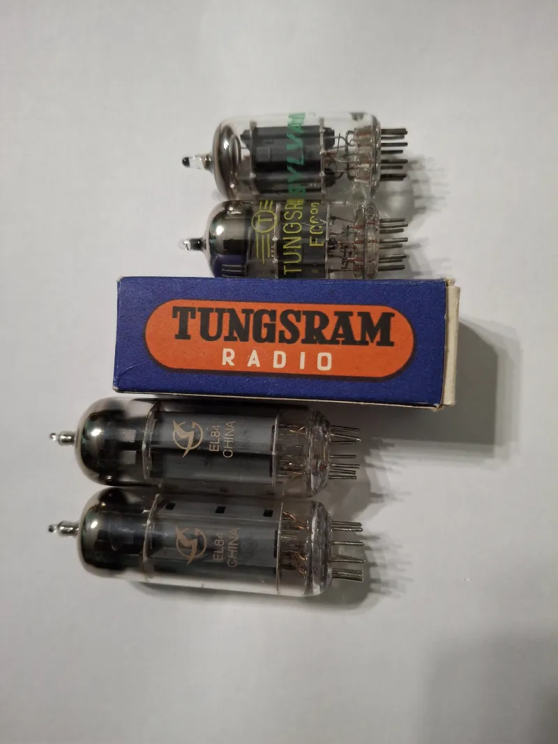 Eladóak a következő elektroncsövek: EL84 párban (kínai, max. 20 üzemórával) ECC82 (fazisfordító) N.O.S. (GY. ÉV: 1985),Sylvania (1981,)USA; Elektromosan: teljes értékű ECC83 / 12AX7