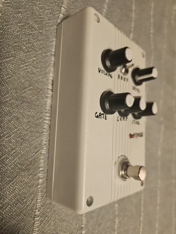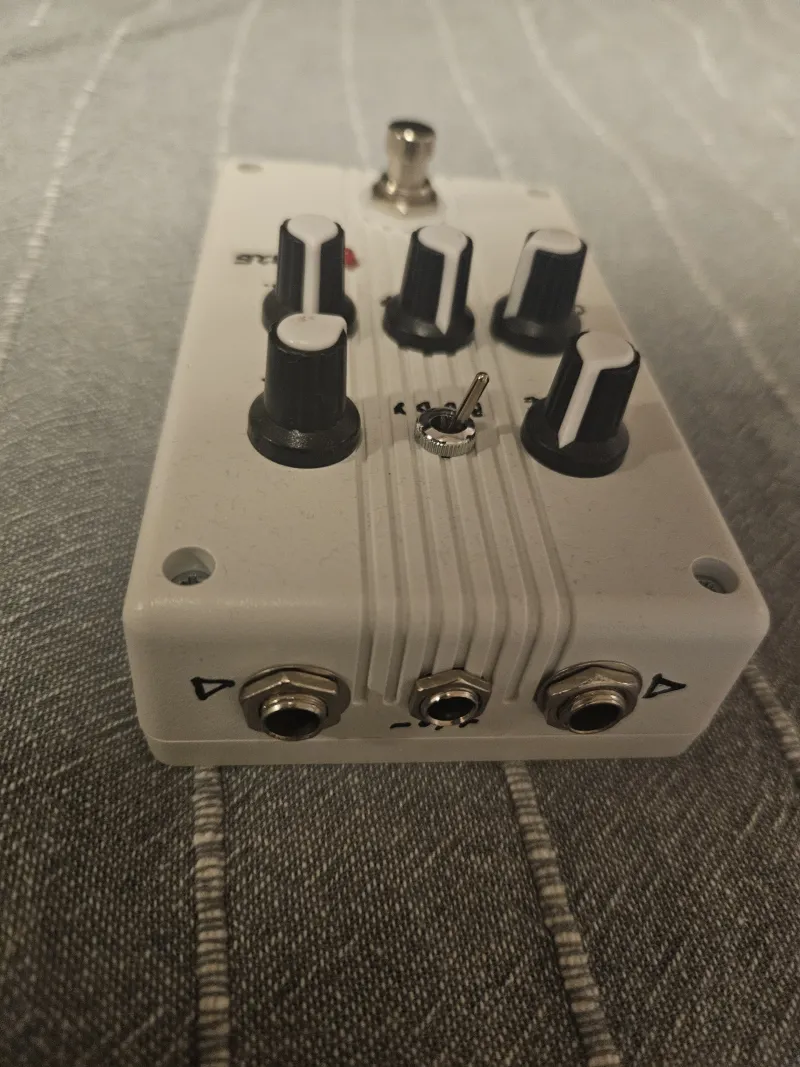 Fuzz Factory alapján épített pedál by Tibor Gacs. Kiváló cucc aprópénzért, tökéletes állapotban.Normál fuzzként is klassz, de mellette rengeteg extrém hangra képes, kísérletezőbb zenékhez alap. Kapott egy extra Fat mód kapcsolót és MP42B szovjet tranzisztorokat.